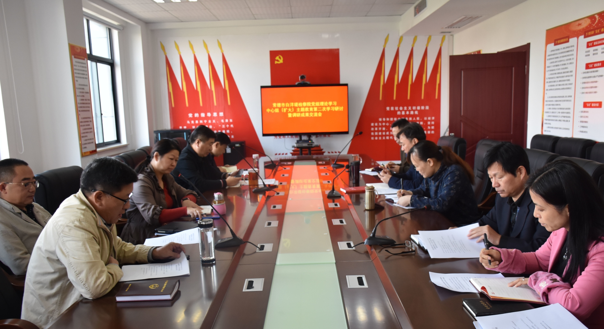 10月18日上午,市白洋堤检察院以党组理论学习中心组(扩大)会议形式召开 “不忘初心、牢记使命”主题教育第二次学习研讨暨调研成果交流会,院党组班子成员、科室负责人、员额检察官参加会议。