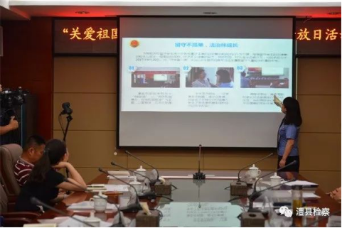 该院未检专干程璐璐通过精心制作的PPT,对该院未检工作历程、创新及亮点工作进行了现场解说。为了让嘉宾对未检工作有更加深入的了解,会场播放了未检职能宣传片《呵护未来,以国家的名义》。