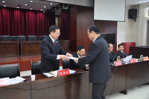 大会对2012年度全市先进基层院、执法状况考评先进基层院进行表彰,各区县市检察院检察长向刘清生检察长递交了党风廉政建设责任状。